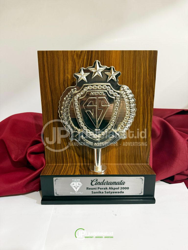 Berikan apresiasi yang berkesan dan abadi dengan Plakat Kayu Premium Classic. Desain ini menonjolkan kesan wibawa dan eksklusif dengan memadukan kehangatan tekstur kayu alami dan kemilau logam krom. Sangat ideal untuk cinderamata reuni akbar, penghargaan kedinasan, maupun kenang-kenangan instansi militer dan kepolisian.